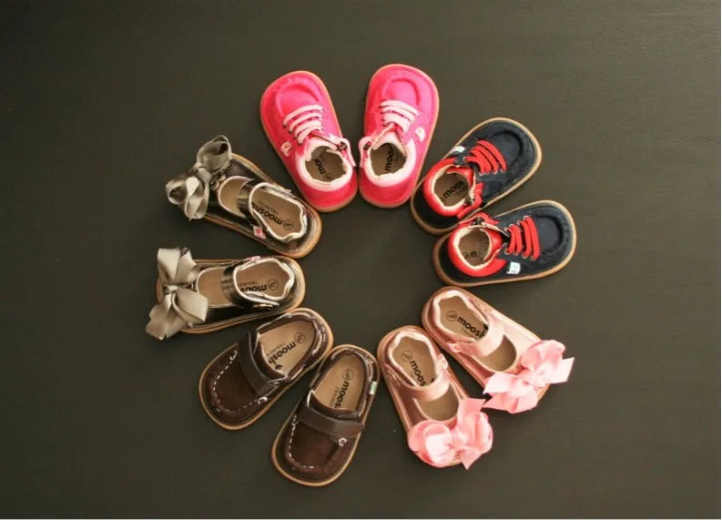 - Mooshu Trainers have a wonderful selection of dressy and casual shoes for your shoot. My favorite, the Mary Janes can be dressy with the bow or without. I love the picture above because we coordinated the red Mary Janes with the red in the mother’s outfit, but in little details like matching shoes and adding a pop of red in the mother’s belt. Of course the Sawyer shoe can virtually go with anything and is a real classic.